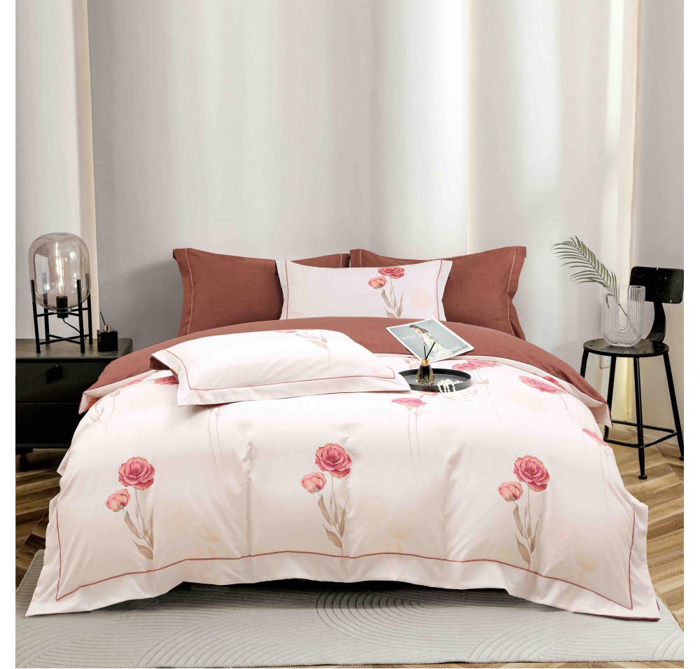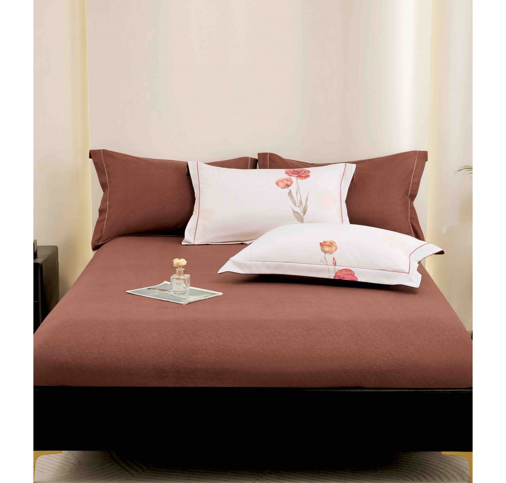 Lenjerie de pat 6 piese din finet bumbac – Maro si Roz Pudra
